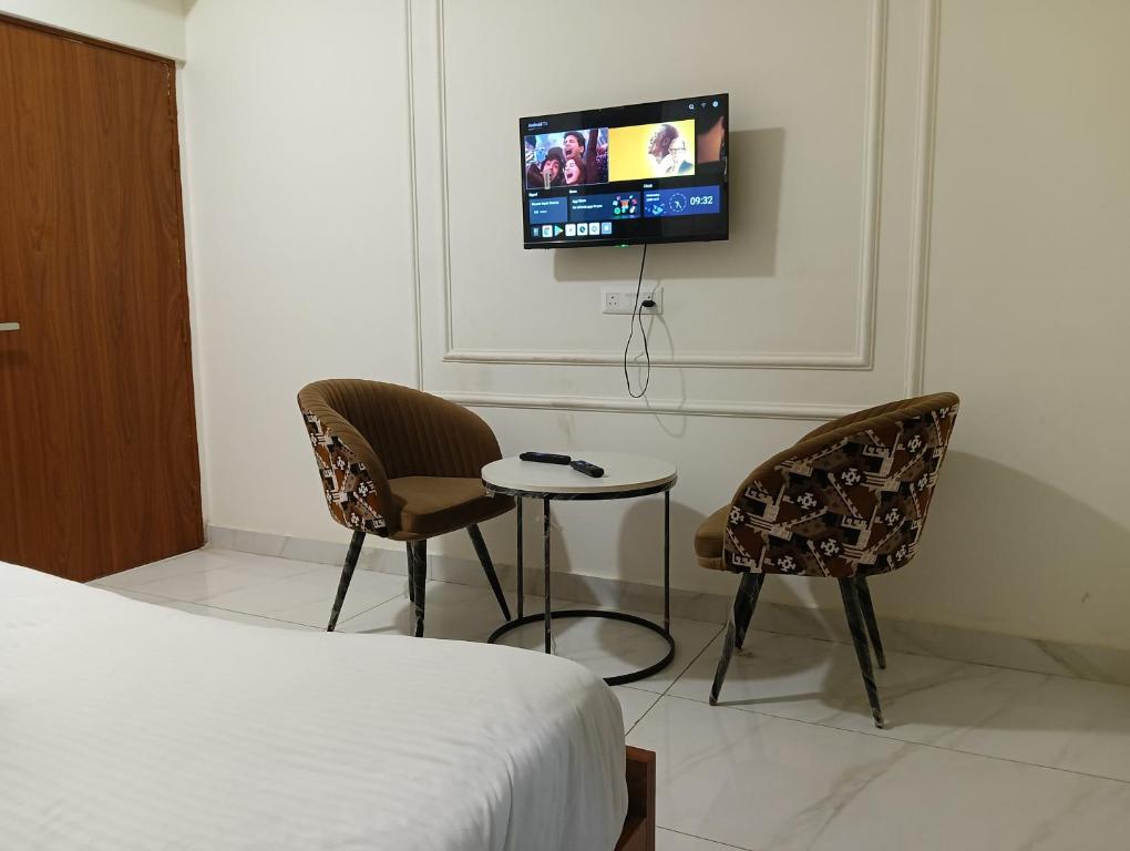 Comfortable Accommodations: PLAY GOLDEN PETELS near cherry county in Noida offers 3-star hotel rooms with air-conditioning, balconies, bathrobes, private bathrooms, baths, work desks, free toiletries, showers, and TVs.